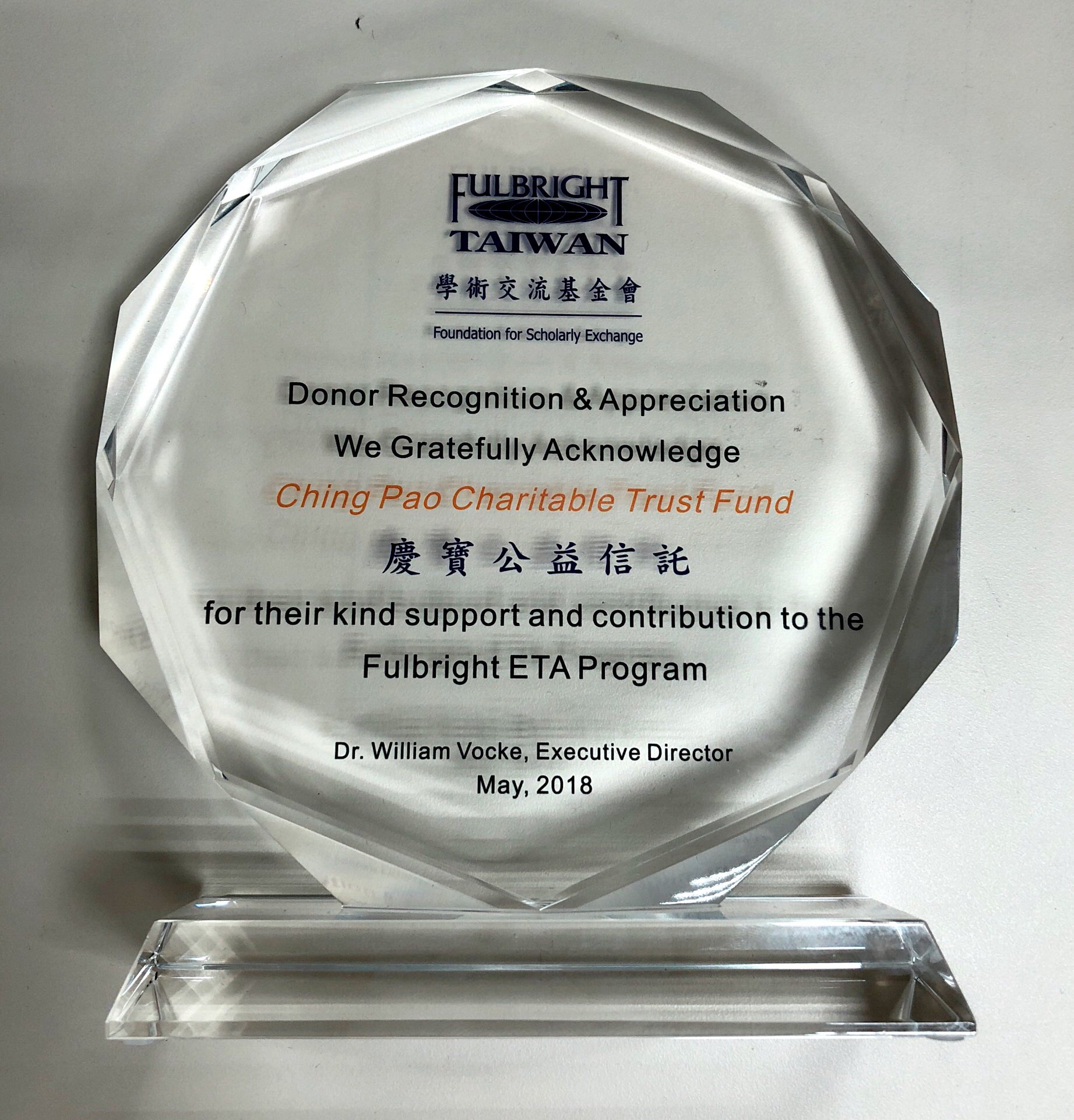 慶寶公益信託推動花蓮縣英語協同計畫,獲學術交流基金會致贈感謝獎座