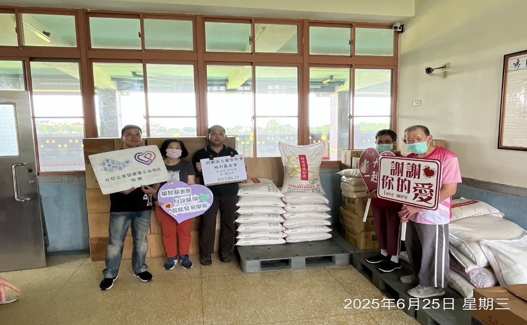 慶寶公益信託 2025年7月份捐贈白米114,775台斤、日用品546箱,總金額389萬元。